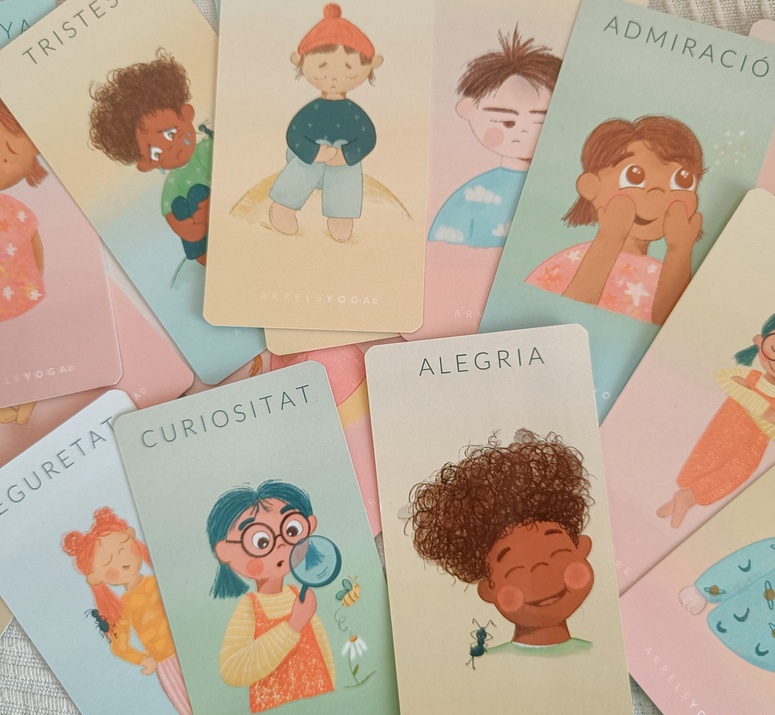 Junto con Arrels Yoga hemos diseñado materiales para trabajar las emociones de los mas pequeños, ¡Conócelos!