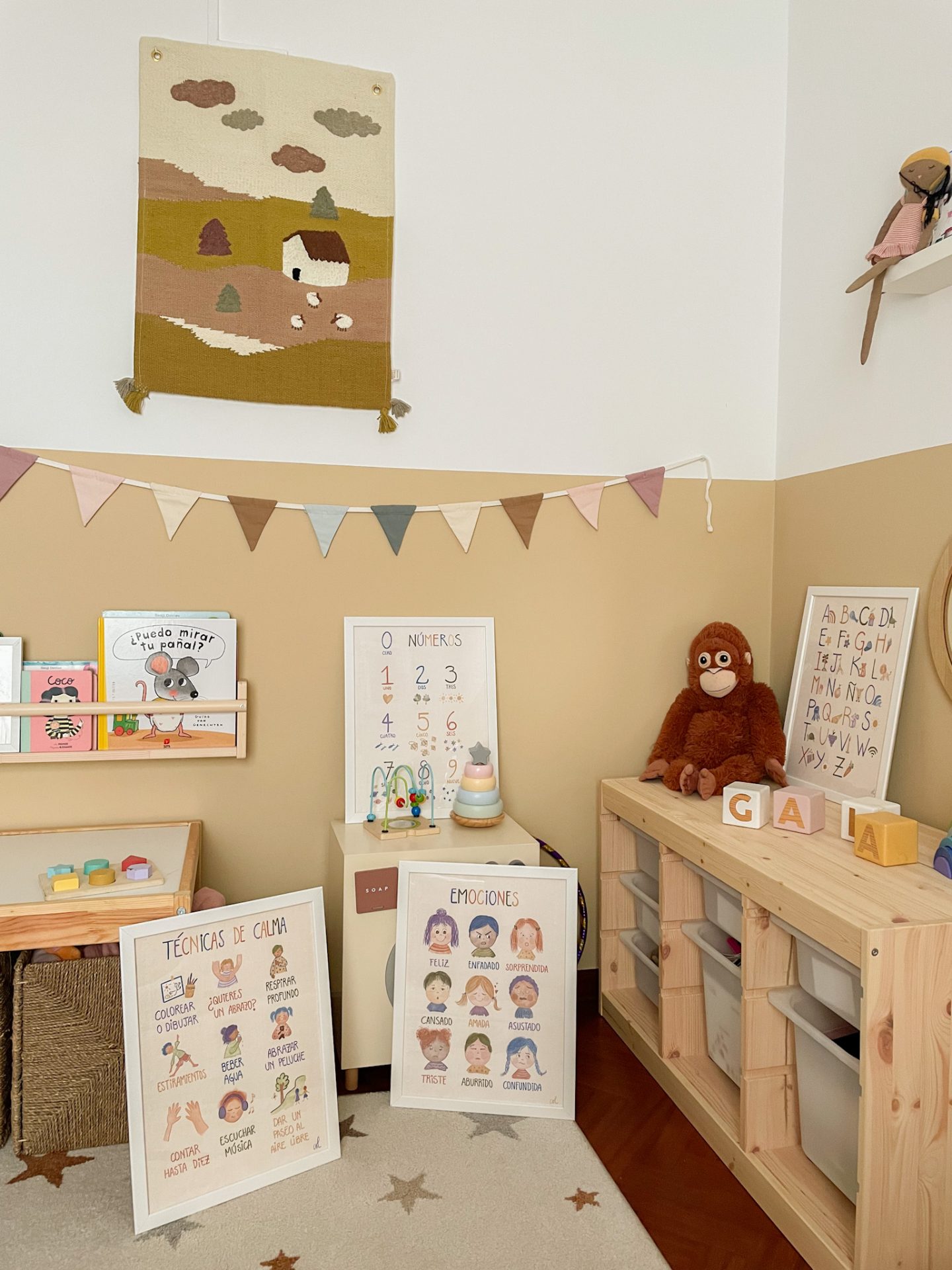 Todas las ilustraciones en colores tierra pastel, con un toque vibrante y divertido.