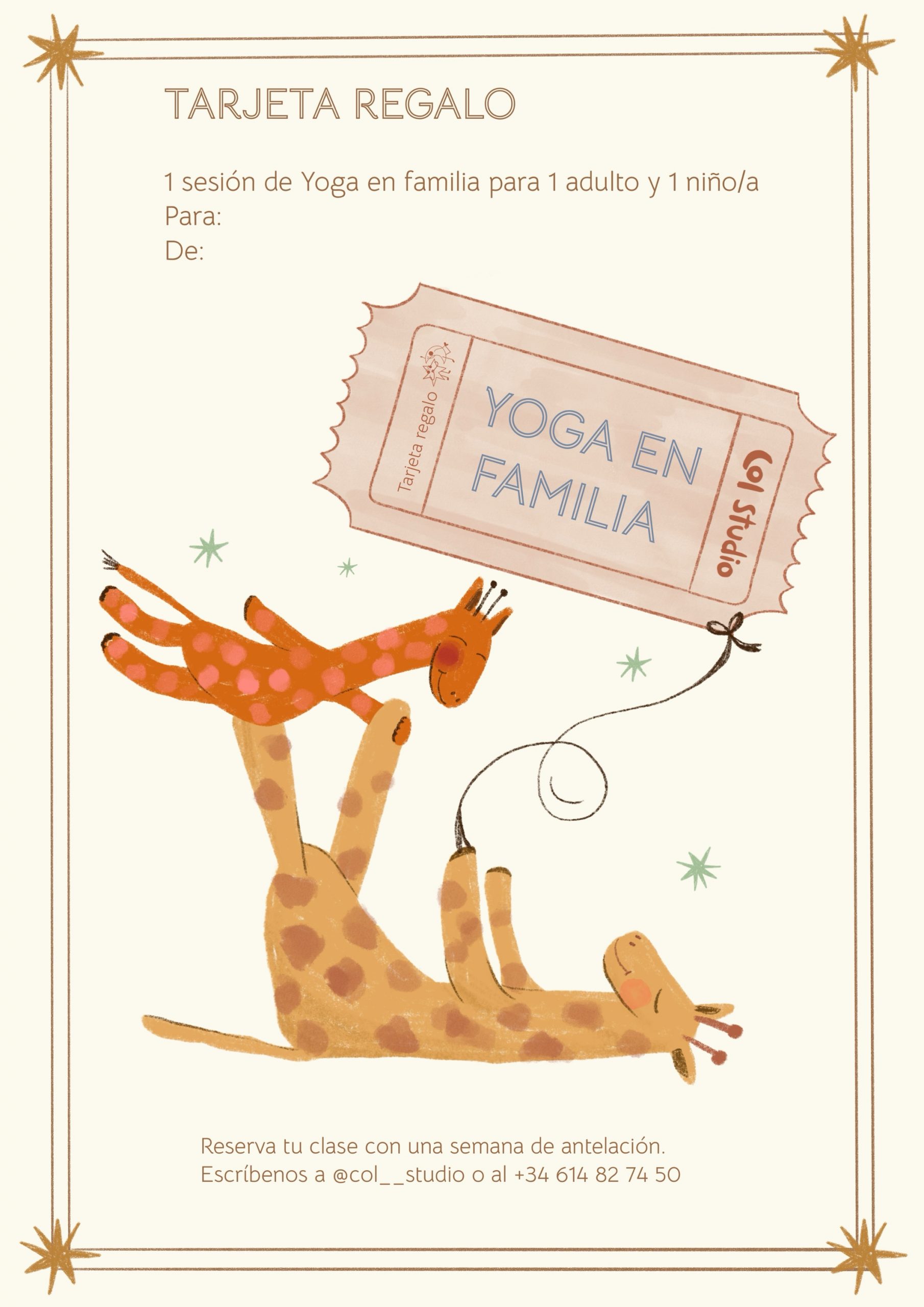 Con este vale podréis disfrutar juntos de una clase de yoga en familia, un espacio para conectar, jugar, relajaros y crear un momento especial entre adulto y peque.