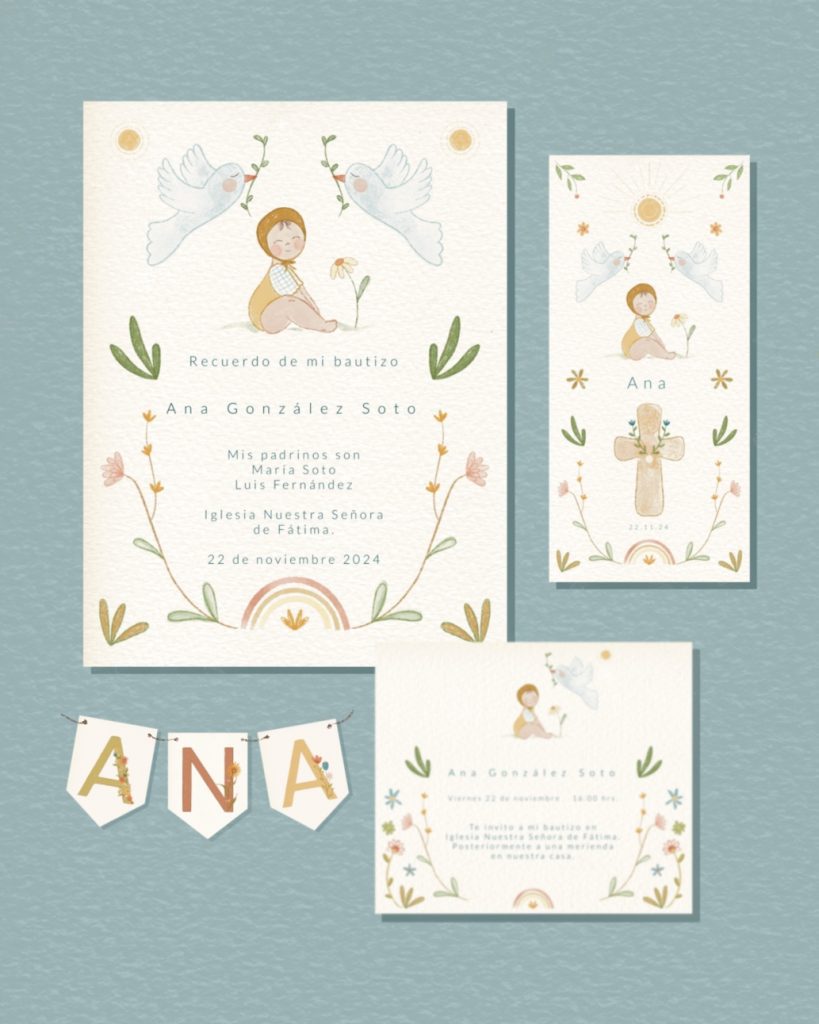 Invitaciones, recordatorios y detalles personalizados para bautizos, comuniones y bodas. Cada diseño está hecho a mano, con ilustraciones únicas y mucho cuidado, para que tu evento tenga un toque especial y auténtico.
